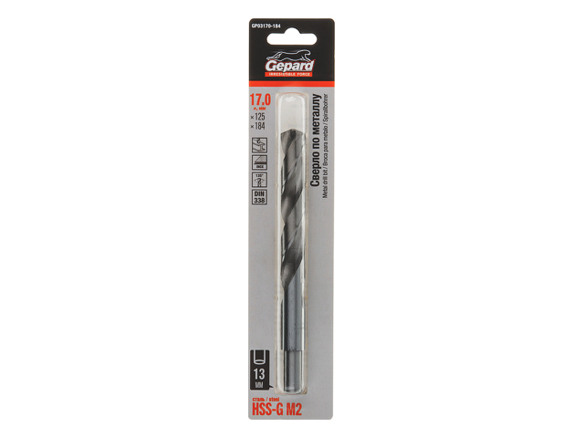 Сверло по металлу ц/х 17.0х125х184 мм HSS-G GEPARD (хвостовик 13мм)