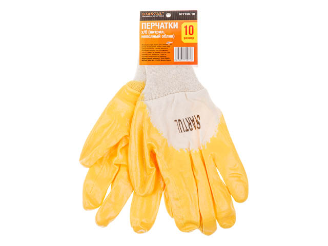 Перчатки х/б, нитриловое покрытие (неполный облив), манжет резинка, 10 р-р STARTUL
