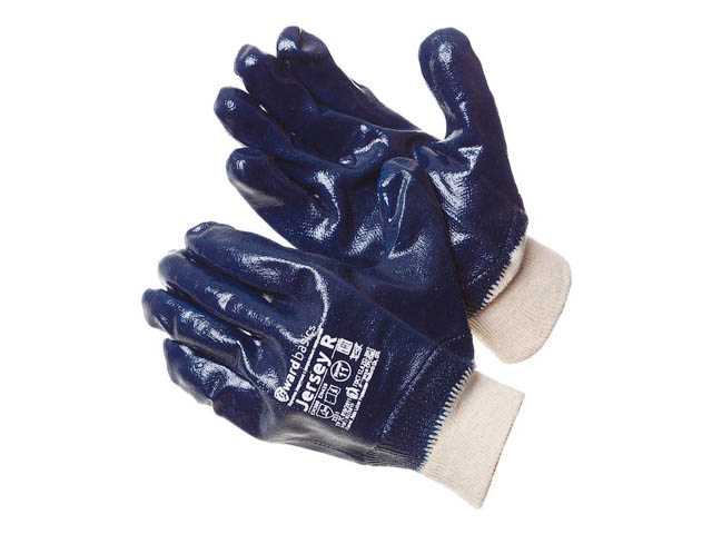 Перчатки изготовлены из трикотажной основы "Джерси" с антибактериальной пропиткой и манзжетом резинкой и дважды покрыты нитрилом.
