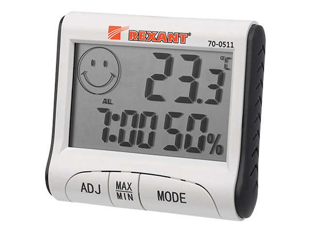 Термогигрометр комнатный с часами и функцией будильника REXANT предназначен для измерения показаний температуры и влажности в помещении, имеет часы и функцию будильника. Регистрирует в памяти максимальное и минимальное значения температуры. Отображает общий уровень метеокомфорта в помещении. Имеет настольную подставку.