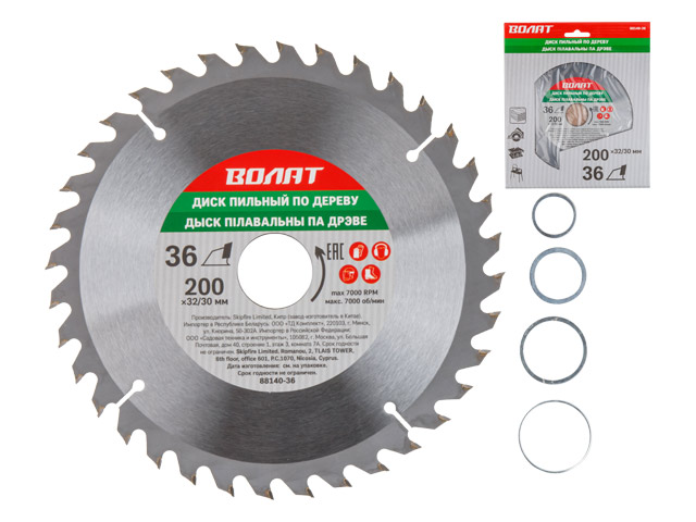 Диск пильный 200х32/30 мм 36 зуб. по дереву ВОЛАТ (твердоспл. зуб)