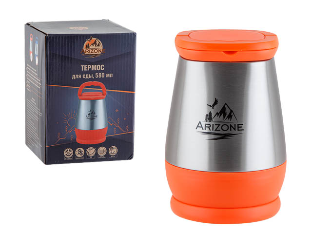 Термос для еды, 580 мл, нержавеющая сталь, сталь/оранжевый, ARIZONE
