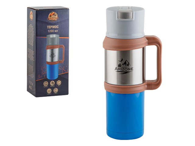 Термос, 1200 мл, нержавеющая сталь, сталь/синий, ARIZONE