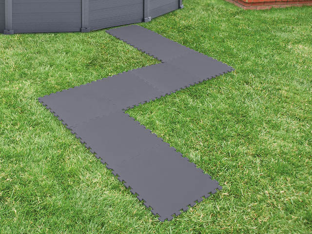 Подстилка-пазл состоит из восьми частей размером 50х50 см и толщиной 0.5 см. Изготовлена из прочного полиуретана и обеспечивает надежную защиту дну бассейна. Благодаря сборной конструкции, подстилка подойдет для бассейна любой формы.