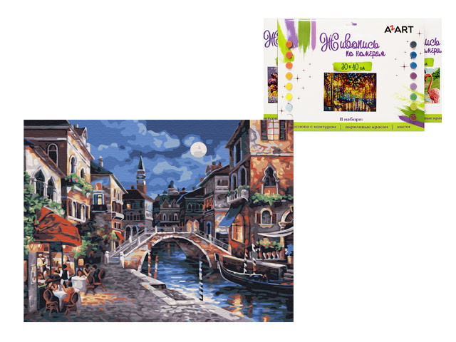 Живопись по номерам на картоне 30 х 40 см "Ночь в Венеции", Azart
