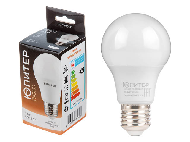 Лампа светодиодная A60 СТАНДАРТ 11 Вт 170-240В E27 4000К ЮПИТЕР ЛЮКС