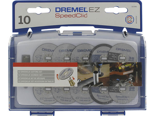Набор для резки Dremel EZ SPEEDCLIC (SC 690) - это 11 насадок, которые Вы можете легко и быстро менять без использования дополнительного инструмента. Насадки предназначены для проведения точных и аккуратных отрезных работ по различному материалу.