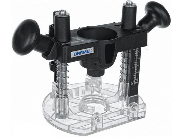 Превращает инструмент Dremel во фрезерный станок, который может фрезеровать по окружности, гравировать символы и выполнять инкрустацию, изготавливать декоративные кромки, а также фрезеровать параллельно кромке.