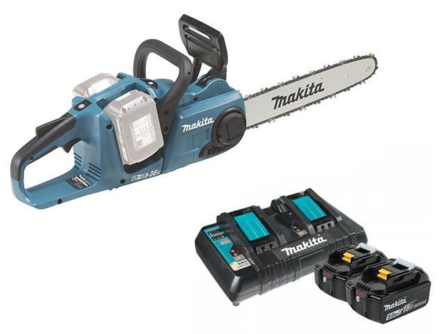 Аккум. пила цепная MAKITA DUC 353 Z шина 35 см (14"), 3/8, 1.1 мм + АКЦИЯ (2 аккумулятора, зарядное) (18+18 В, 2 акк.,6.0 А/ч, Li-Ion, зар. DC18RC)