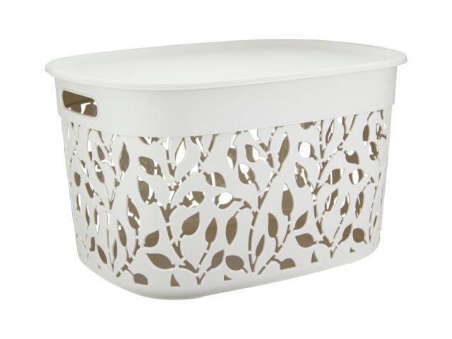 Коробка ФЛОРА 25 л с крышкой (белый ротанг) IDEA