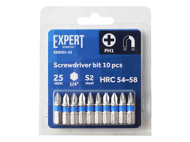 Насадка крестообразная PH1 25мм 10шт EXPERT STARTUL (SE8501-25) (бита Phillips магнитная)
