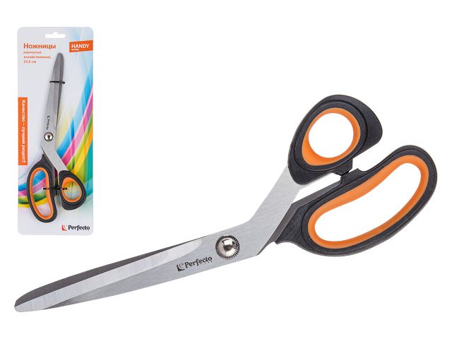 Ножницы изогнутые хозяйственные, двухкомпонентные ручки 23.5 см, серия Handy (Хенди), PERFECTO LINEA