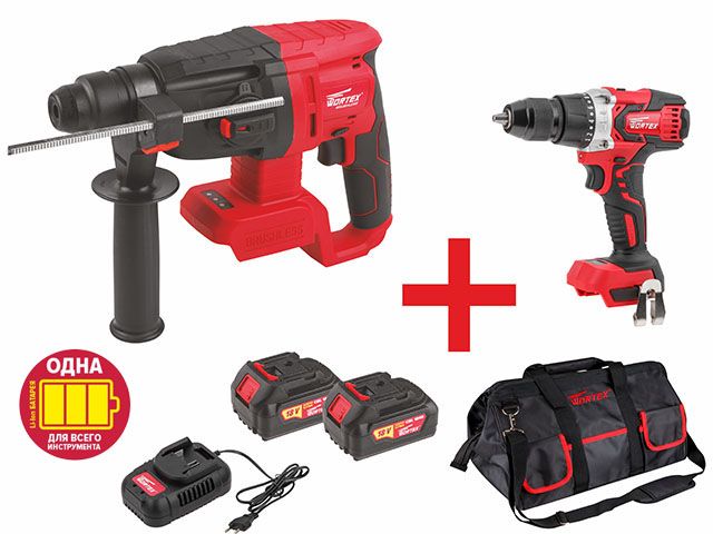 Аккум. перфоратор WORTEX CRH 1824-1 в кор. ALL1 + АКЦИЯ!(дрель-шур, 4А акб 2шт., з/у, сумка) (WORTEX BD 2030 Dli в кор. ALL1+З/У+2 Аккумулятора CBL 18