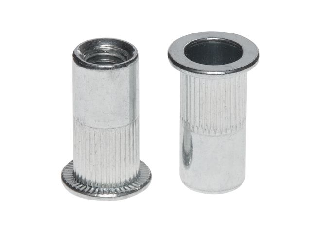 Стальная оцинкованная резьбовая заклепка с насечками и цилиндрическим бортиком применяется для соединения материалов, где необходимо создать