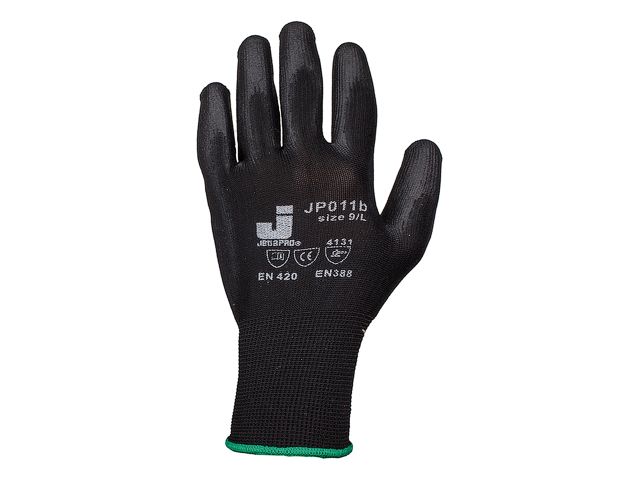 Перчатки нейлон, полиуретановое неполн. покрытие, р.L, черные, Jeta Safety