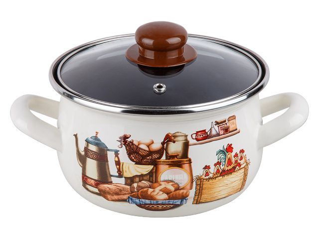 Кастрюля с деколью сферической формы.