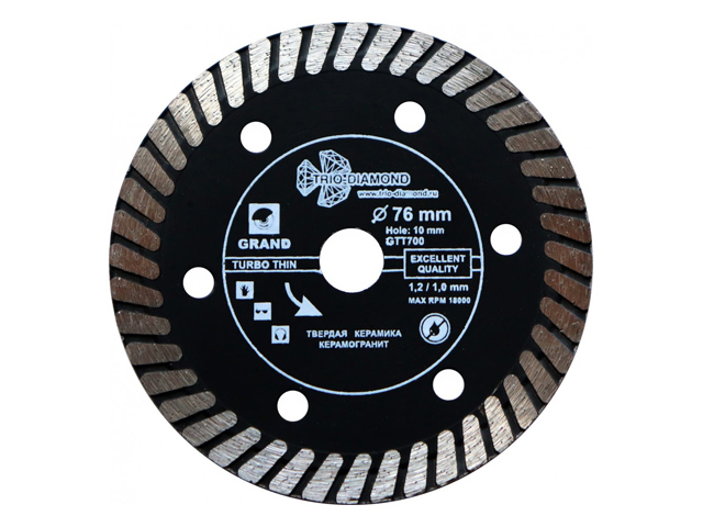 Алмазный диск 76*8*10мм по керамике ультратонкий Grand hot press (для мини УШМ, толщина резущей кромки 1.2 мм) (Trio-Diamond)