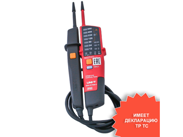 Индикатор напряжения и проводимости цепи ZEN-VCT690-1 является многофункциональный средством измерения напряжения, диагностики УЗО, чередования фаз, непрерывности цепи и определения полярности. Прибор состоит из двух блоков соединенных кабелем, выполненных в виде ручек-тестеров, одна из которых исполняет роль блока управления. Индикация осуществляется при помощи ряда LED диодов. Прибор защищен от воздействия влаги и попадания мелких частиц в соответствии с международным стандартом IP 65.