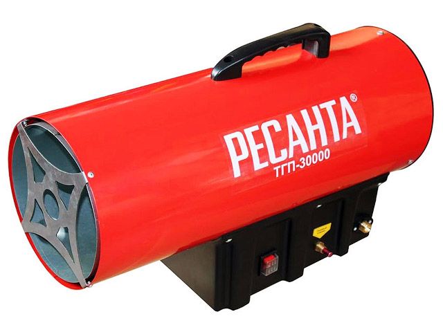 Нагреватель воздуха газовый (пушка) ТГП-30000 Ресанта (30 КВт, 220В, пл. обогрева 150м2, 7.5 кг Комплектация Тепловая пушка, Ручка, Газовый шланг, Ре