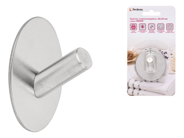 Крючок самоклеящийся ORION, нержавеющая сталь, блистер, PERFECTO LINEA