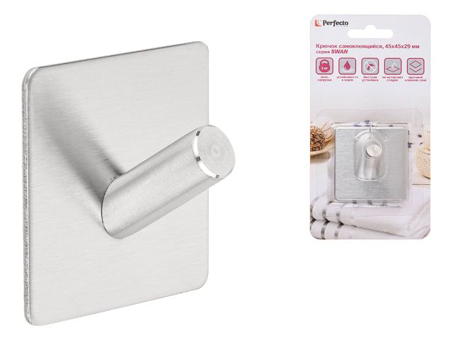 Крючок самоклеящийся SWAN, нержавеющая сталь, блистер, PERFECTO LINEA