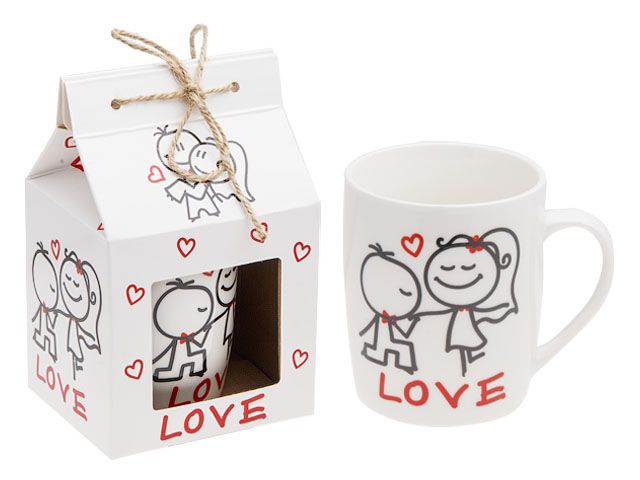 Кружка керамическая, в кор.,350 мл, ВЛЮБЛЕННЫЕ СЕРДЦА (2), PERFECTO LINEA