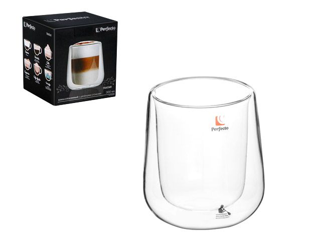 Бокал стеклянный с двойными стенками, 300 мл, серия TRATAR, PERFECTO LINEA (Бокал стеклянный, ручной из боросиликатного стекла.)