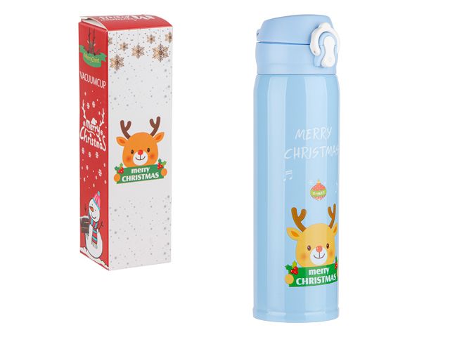 Термос, 500 мл, нержавеющая сталь, MERRY CHRISTMAS, голубой, PERFECTO LINEA