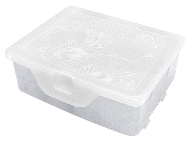 Fiori Orchid XS Органайзер для хранения мелочей с разделителями (10,5х8,3х4,2 см) - эффективно и без излишних затрат поможет организовать хранение всех домашних мелочей, в одном стиле и в одном месте, чтобы ничего не потерялось. Для ниток и иголок, бижутерии и косметики, таблеток и товаров для творчества, для каждой домашней мелочи найдется свое место. Уникальный дизайн крышечки выделяет органайзер на фоне всевозможных аналогов - флористический тонкий фактурный рисунок на прозрачном корпусе не оставит равнодушной ни одну женщину.