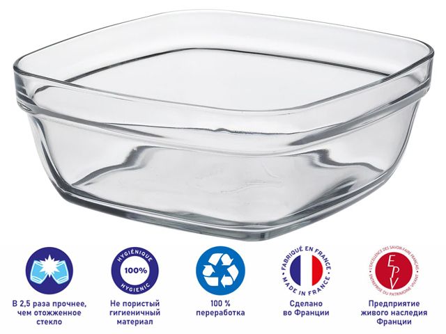 Салатник стеклянный, 200 мм, квадратный, серия Lys Carre Clear, DURALEX (Франция)