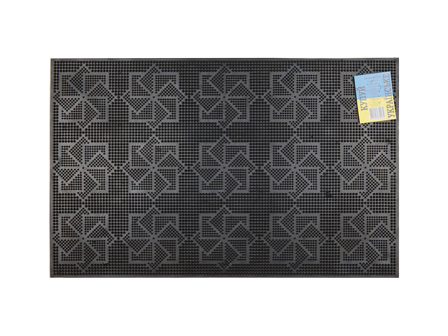 Коврик придверный 58х36,5 см, черный, с геометрическим узором, TM YPgroup (Размер 58х36,5 см. Материал: вулканизированная непористая резина.)