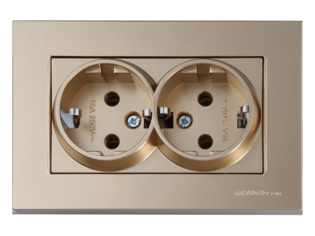 Розетка 2-ая (скрытая,с/з) золото, RITA, MUTLUSAN (16 A, 250 V, IP 20)