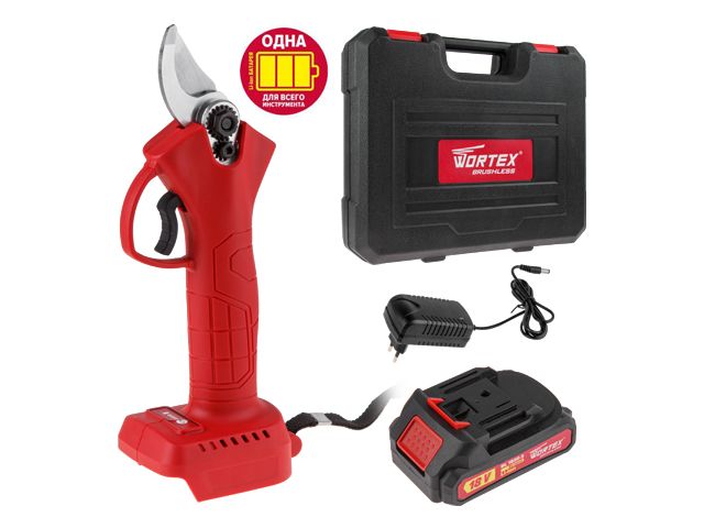 Аккум. секатор WORTEX CBS 2535 ALL1 в чем. БЕСЩЕТ., 18 В, ветки до 25 мм, 1х1.5 А*ч