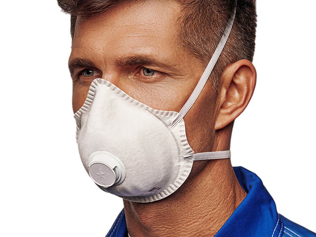 Формованный респиратор из нетканого фильтрующего материала, имеющий эластичные ленты оголовья и клапан выдоха который обеспечивает понижение влажности и температуры в подмасочном пространстве и создает комфортные условия для дыхания.