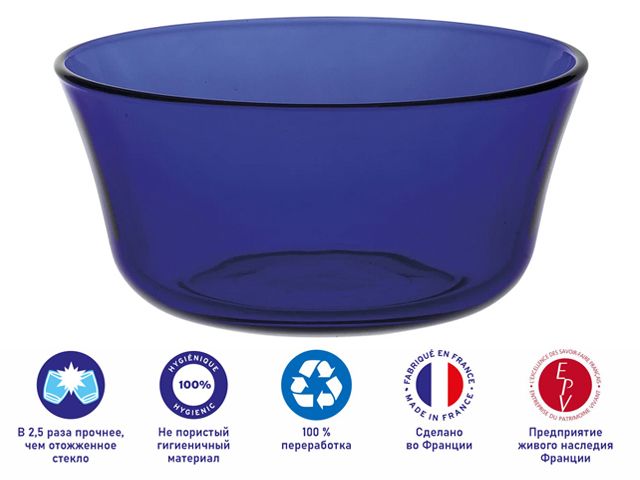 Салатник Lys из сверхпрочного закаленного стекла от ТМ Duralex - надежный помощник в приготовлении любимых рецептов. Трендовый цвет "сапфир" создаст настроение и добавит яркости. Ударопрочное стекло обеспечивает привлекательный внешний вид и устойчиво к появлению царапин. Салатники компактны в хранении и экономят место на кухне, ведь их удобно штабелировать. Стеклянная посуда ТМ Duralex производится во Франции с 1945 года. Процесс закаливания придает стеклу ТМ Duralex особую прочность. Во время закаливания стекло ТМ Duralex , предварительно нагретое до 700°С, подвергается резкому охлаждению холодным воздухом. Этот процесс делает стекло ТМ Duralex в 2,5 раза более устойчивым к механическим повреждениям, чем отожженное стекло. Характеристики: ударопрочное закаленное стекло, термостойкость до 130 ° C (EN 1183), можно мыть в посудомоечной машине, подходит для использования в микроволновой печи.