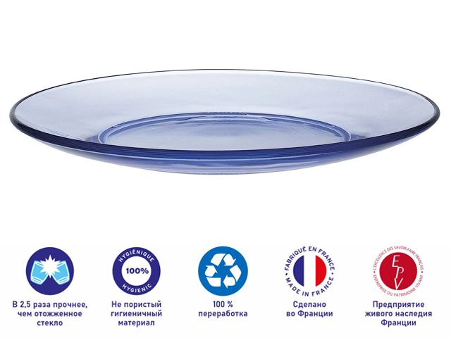 Благодаря актуальному и не подвластному времени дизайну серия ТМ Duralex Lys привнесет нотку элегантности в сервировку стола. Нежно-голубой цвет стекла будет радовать глаз и придаст ощущения свежести сервировке стола. Стеклянные тарелки понравятся гостям и подчеркнут Ваши лучшие блюда. Ударопрочное стекло обеспечивает привлекательный внешний вид и устойчиво к появлению царапин. Стеклянная посуда ТМ Duralex производится во Франции с 1945 года. Процесс закаливания придает стеклу ТМ Duralex особую прочность. Во время закаливания стекло ТМ Duralex , предварительно нагретое до 700°С, подвергается резкому охлаждению холодным воздухом. Этот процесс делает стекло ТМ Duralex в 2,5 раза более устойчивым к механическим повреждениям, чем отожженное стекло. Характеристики: ударопрочное закаленное стекло, термостойкость до 130 ° C (EN 1183), можно мыть в посудомоечной машине, подходит для использования в микроволновой печи.