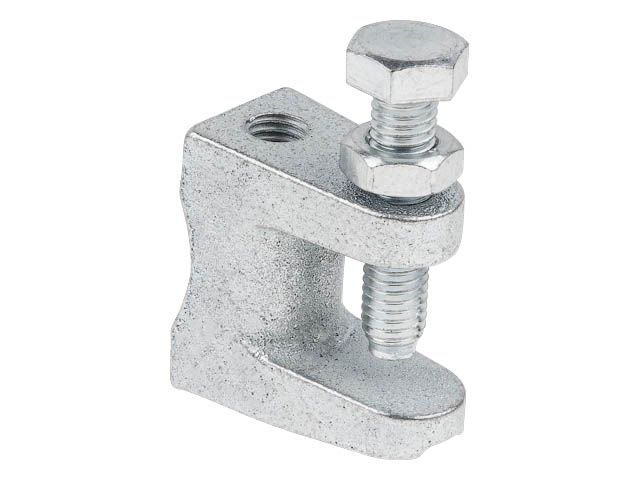 Применяется для крепления подвесных инженерных систем к тавровым и двутавровым балкам, несущих конструкций зданий, с использованием шпилек. Наиболее распространенные размеры струбцин М8, М10 и М12. Изготавливается из металла, методом литья, с последующим нанесением антикоррозийного покрытия. Элементы дают возможность надежного крепления без применения сварки или сверления. Также дополнительным преимуществом применения струбцин, будет возможность легко регулировать высоту подвески.