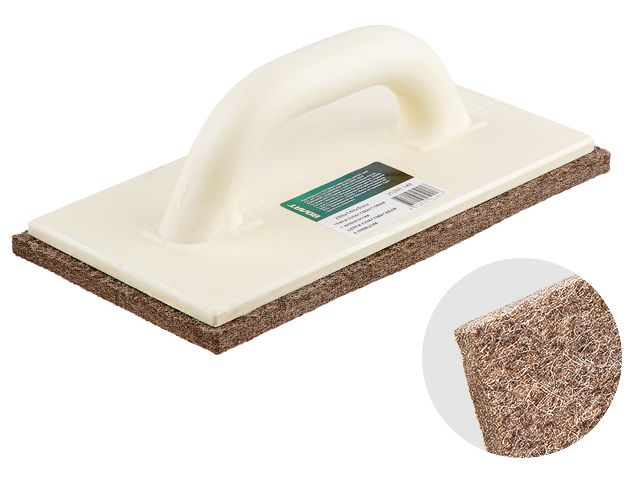 Назначение: тёрка применяется на различных стадиях отделочных работ при обработке поверхностей. По большей мере, её предназначением служит затирка и выравнивание штукатурных растворов, вследствие шероховатого основания. Благодаря небольшому весу она очень удобна в работе. С лёгкостью применяется на откосах и углах;