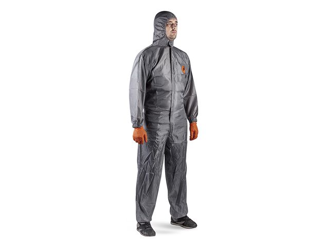 JPC75* Ninja Комбинезон Jeta Safety многоразовый защитный из полиэфирной тканиСостав: 100% полиэфир, плотность 55 г/м?Сферы применения: Работы в камере окраски, строительные работы, профессиональные малярные работы, деревообработка, работы с пылью. Защитные свойства: Пс, Пм, ПнПреимущества:- Индивидуальная упаковка, готовая к рознице;- Многоразовый (до 10 стирок при 40 °C);- Дышащие вставки (спина, подмышки, пах);- Эластичные вставки на поясе и манжетах улучшают облегание комбинезона, не давая ткани контактировать с ЛКМ;- Низкая ворсистость;- Трехпанельный капюшон, облегающий голову и не стесняющий движение;- Внутренний и задний карман;- Два бегунка на молнии;- Не содержит силикон.Цвет: серый