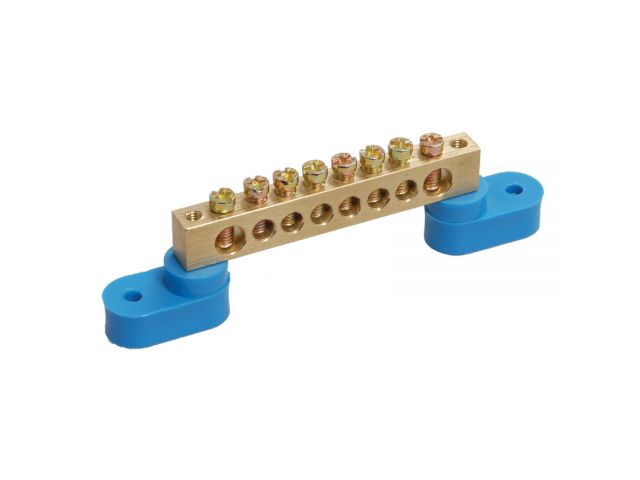 Шина <N> нулевая 6х9 мм на двух угловых синих изоляторах 8 групп REXANT