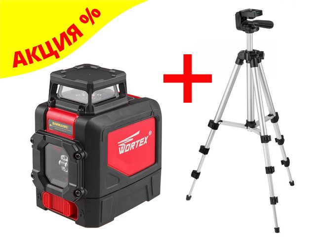 Нивелир лазерный линейный WORTEX LL 0330 X в кор. + АКЦИЯ! (штатив 1м в ПОДАРОК!) (проекция: крест, 1 плоскость 360°, до 30 м, +/- 0.3 мм/м, резьба 1/ купить в Минске: