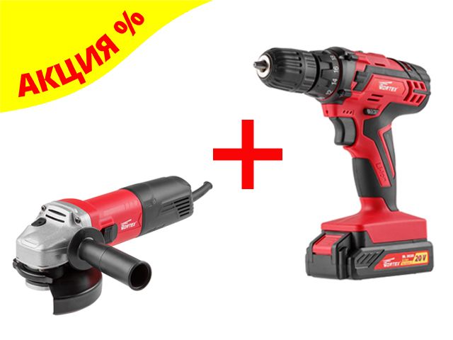 Аккум. дрель-шуруповерт WORTEX BD 2020-1 DLi в чем.+АКЦИЯ AG1210100013 углошлифмашина AG 1210-1 (скидка на комплект 15% + AG1210100013 Одноручная угл