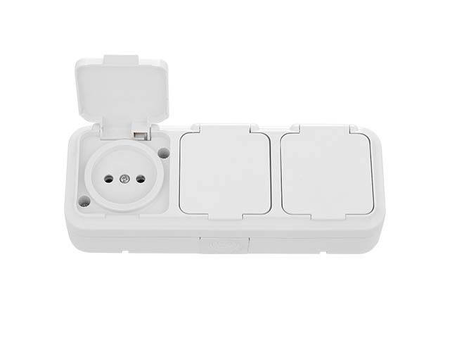 Розетка 3-ая (открытая, б/з, брызг. защ.) белая, Пралеска Аква, Bylectrica (IP54 пылебрызгозащищенные)