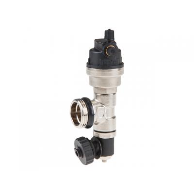 Плюсом такого типа смешивания является то, что весь расход теплоносителя, проходящего через насос, идет потребителю. Циркуляционный насос прогоняет теплоноситель через петли теплого пола, забирая его из обратного коллектора и направляя в подающий. Из подающего коллектора теплоноситель поступает в контуры теплого пола, а затем в обратный коллектор. Этот цикл (вторичный контур) повторяется до тех пор, пока вода не остынет. Погружной датчик постоянно контролирует температуру теплоносителя, поступающего в подающий коллектор. При остывании теплоносителя ниже температуры установленной на термостатической головке, термостатический смесительный клапан открывается и происходит подмес горячего теплоносителя, поступающего из котла. В этот же момент избыточный объем теплоносителя сбрасывается из обратного коллектора в котел (первичный контур). Таким образом, теплоноситель из обратки коллектора подается постоянно, а горячий теплоноситель подается только, когда это необходимо, его подача регулируется термостатическим клапаном. Это позволяет избежать перегрева теплого пола и продлить срок его эксплуатации. Обратный клапан предотвращает попадание горячего теплоносителя, поступающего из котла в обратный коллектор.