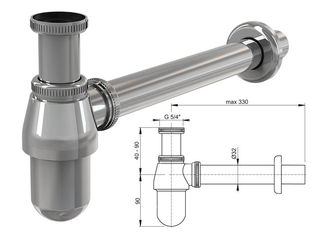 Сифон для умывальника O32, цельнометаллический, с накидной гайкой 5/4, Alcaplast