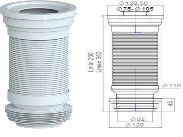 Благодаря своей гибкости и эластичности гофра для унитаза позволяет смонтировать унитаз в удобном для вас месте и с разным удалением от канализационного стояка.