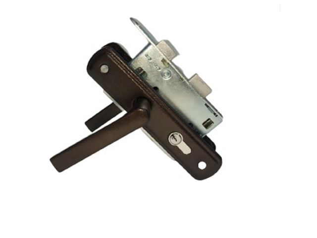 Устанавливается как на правые, так и на левые двери, толщиной 40-50 мм. Сторонность меняется без разборки корпуса замка. Покрытие - полимерное. Пользуется огромным спросом и доверием у покупателя. Изготавливается с прямоугольным засовом. Количество секретов - не менее 5 000 комбинаций. Надёжен и прост в установке.
