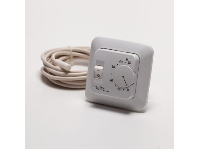 WIRT ТРЛ-02 - надежный и простой в управлении, помогает рационально расходовать электроэнергию:тумблер включения/выключения позволяет включать выключать систему обогрева, не сбивая установленных пользовательских настроек.терморегулятор обеспечивает отключение нагрузки при коротком замыкании, или обрыве цепи датчика температуры.колесо регулировки температуры помогает плавно настроить комфортную температуру в диапазоне от +0°С до +57°С.светодиодная индикация на панели информирует о работе системы.выносной термодатчик EPCOS (Германия) , оснащен кабелем длиной 2.5 метра.максимальная мощность нагрузки 3.5кВт.