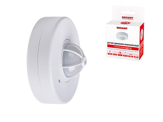Датчик движения потолочный ДДП 02, 120°/360°, 1200 Вт, 10-2000 Лк, 2-6 м,10-420 сек. REXANT
