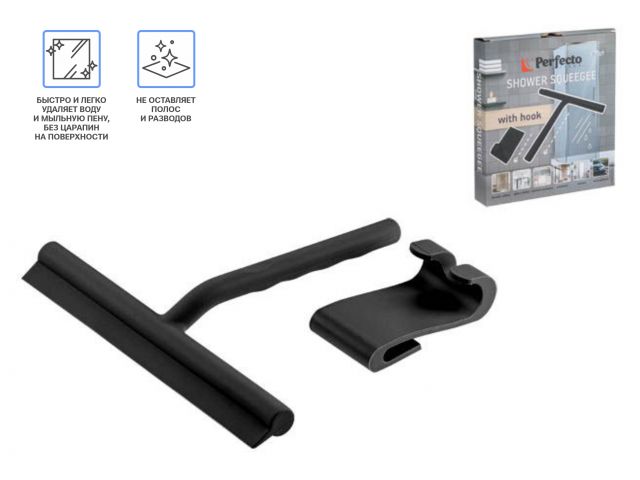 Стеклоочиститель (водосгон) с держателем, черный, PERFECTO LINEA (Идеально для ванной комнаты.)